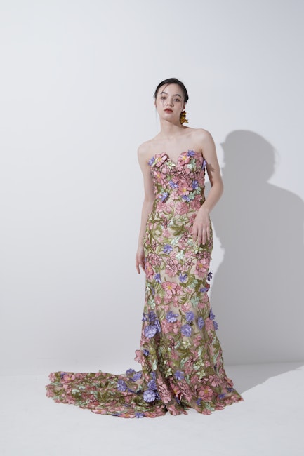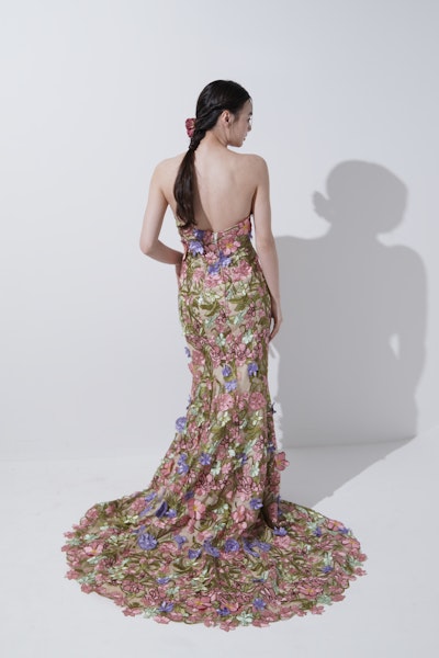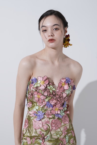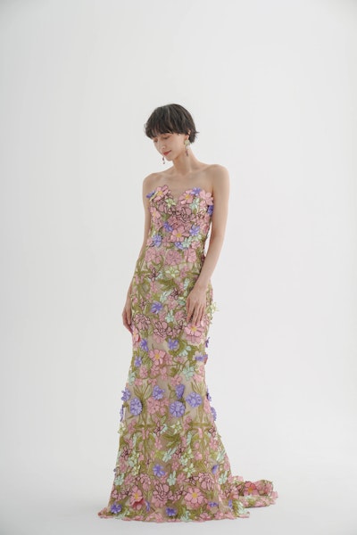 まるで花の庭園をそのまま纏ったような一着。