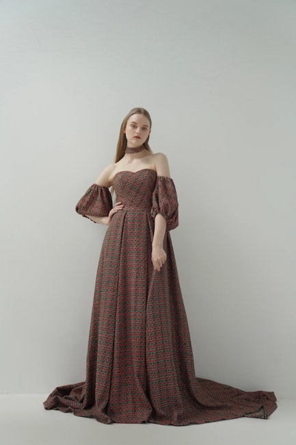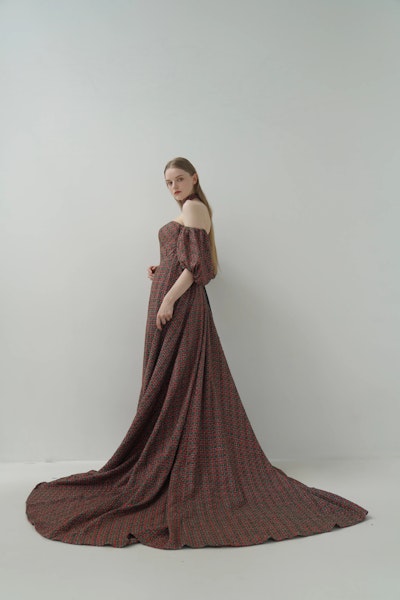 クラシカルなツイードを、現代的に仕立てたラグジュアリードレス。